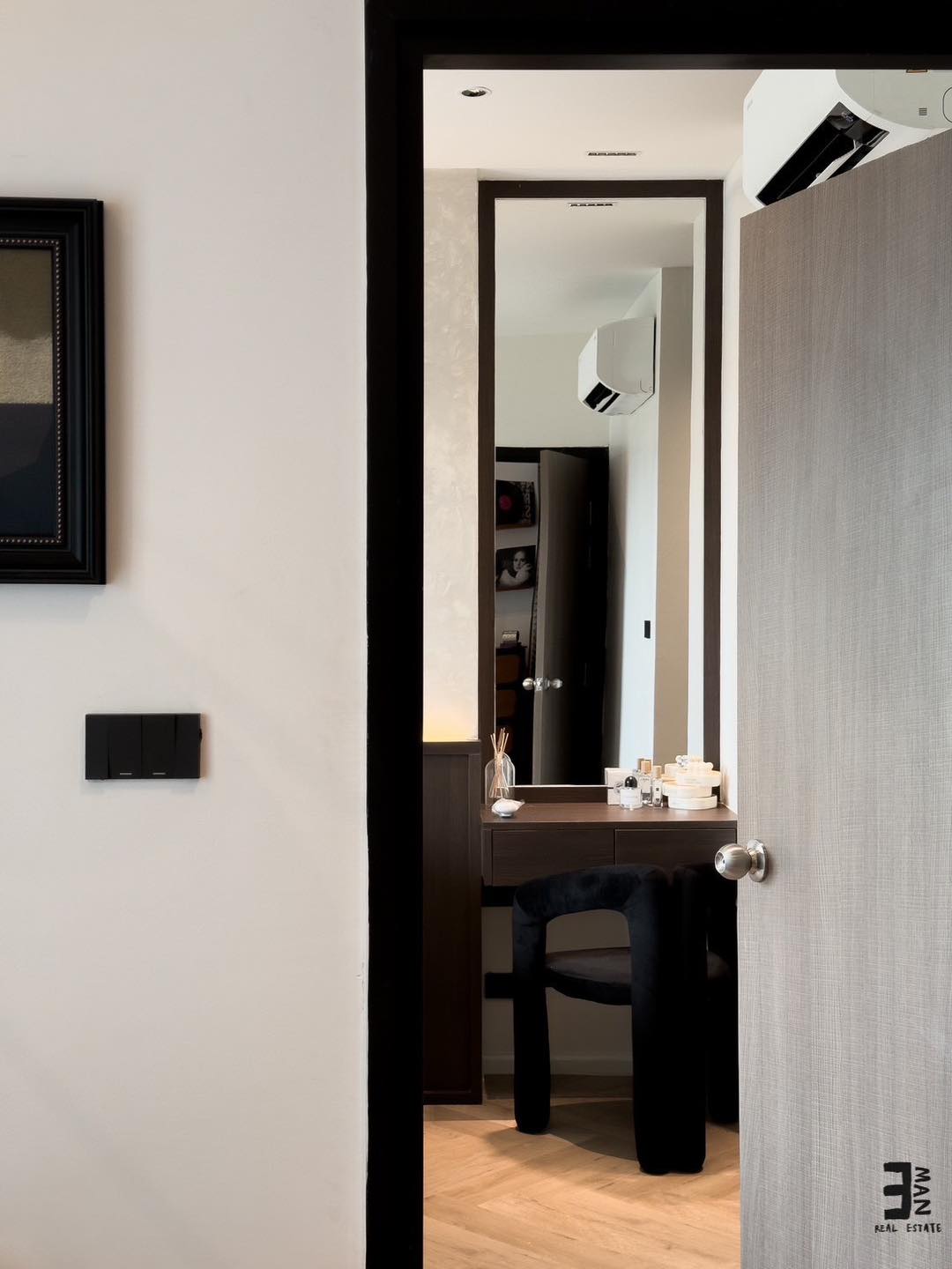- เตียง 6 ฟุต ตู้เสื้อผ้า และโต๊ะเครื่องแป้ง