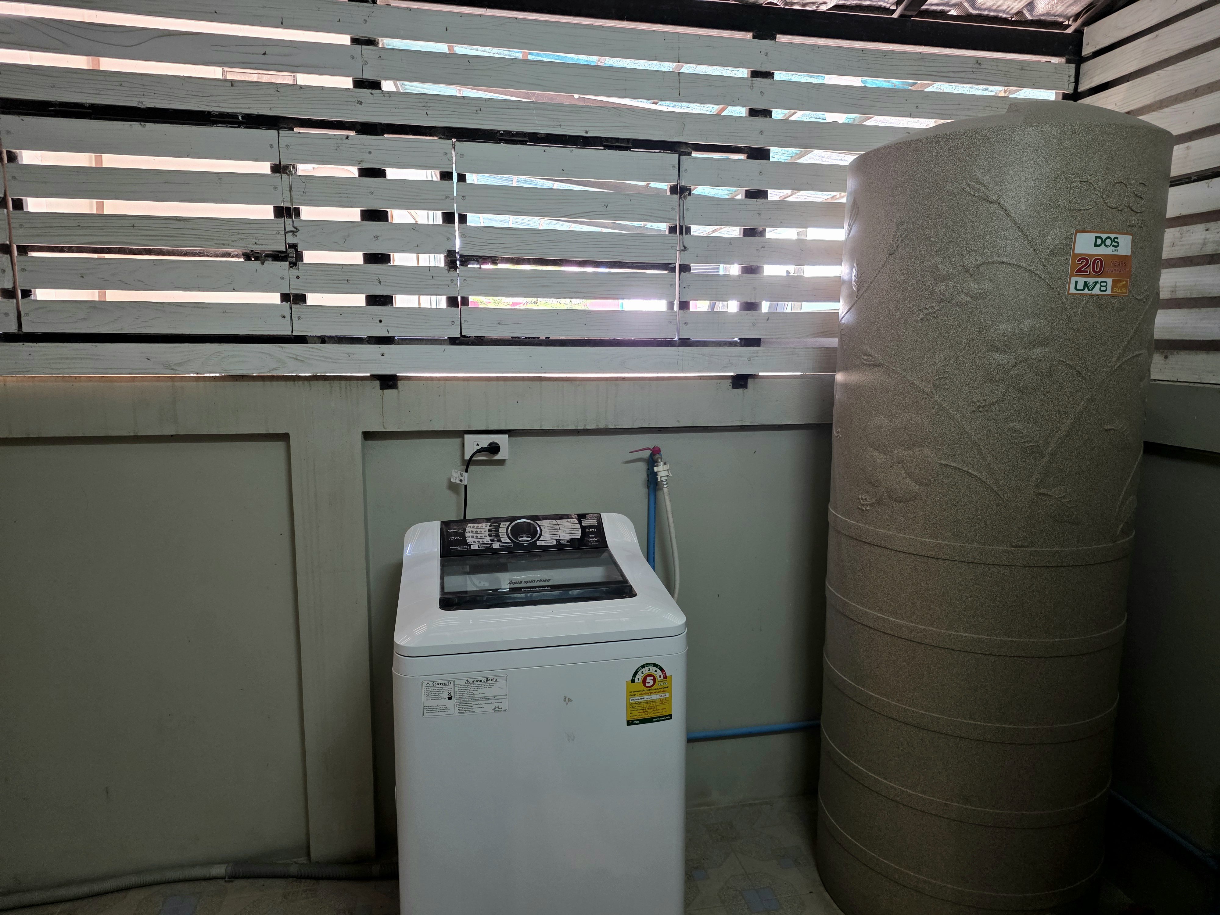 The ground floor includes a welcoming living room that connects seamlessly to the indoor kitchen area. A separate laundry room and outside kitchen space add practicality – especially useful for Thai cooking or additional storage.